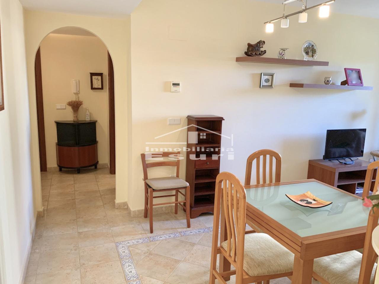 Salón-comedor con acceso directo a una soleada terraza, ideal para disfrutar de las vistas a la piscina y las zonas comunes.